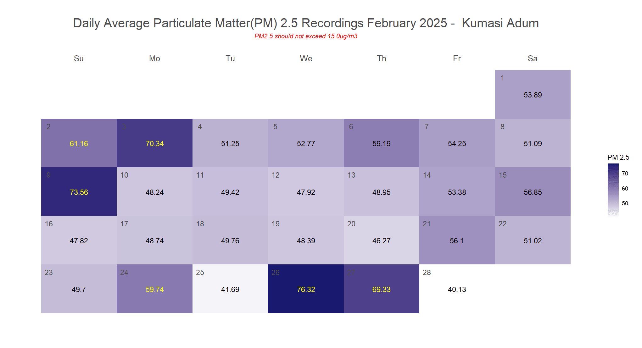 MONTHLY AVERAGE: 54 µg/m³
